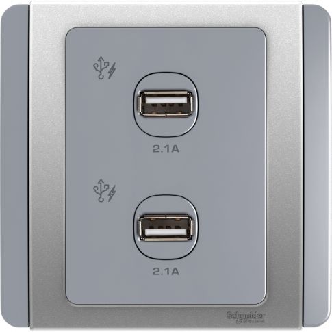 NEO - 2 x 2.1A USB Charger - Grey Silver - E3032USB_GS